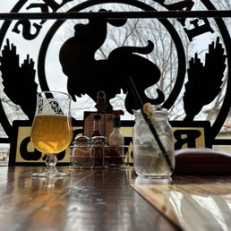 I love this brew pub. They are very nice every time I come here after walking the bike trail with my dog. Super friendly to my dog. It's nice and cool in the summer with the fans and misters. I've had some great food and beer here. I love the fig pig goat pizza and the Risky burger. They have four of their own beers and numerous guest taps, plus wine. I usually get their Chicken Foot pale ale or the Queen Tangerine.